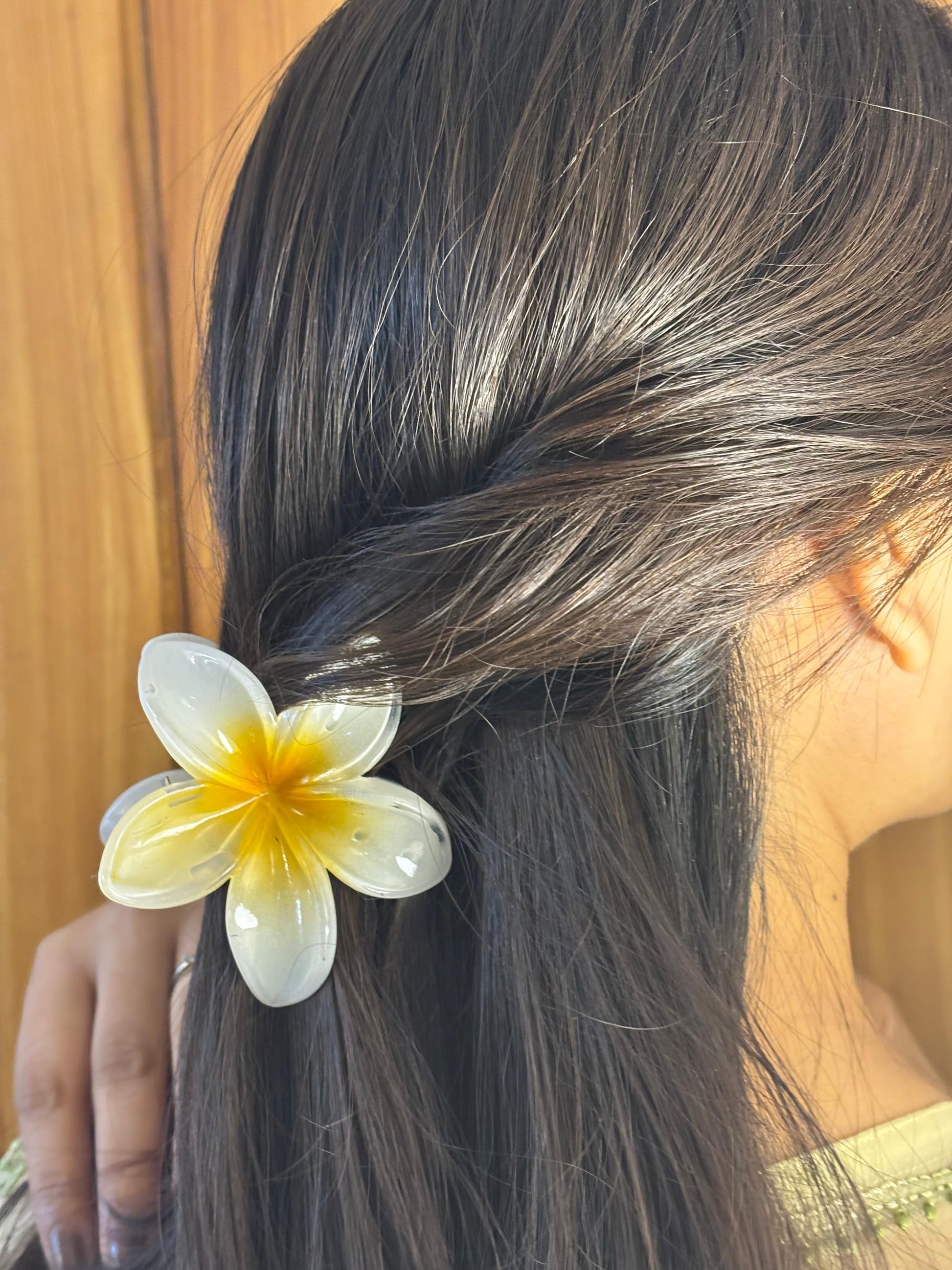 - White-yellow translucent flower hair clip – Dual-tone floral hair accessory with a subtle gradient effect.